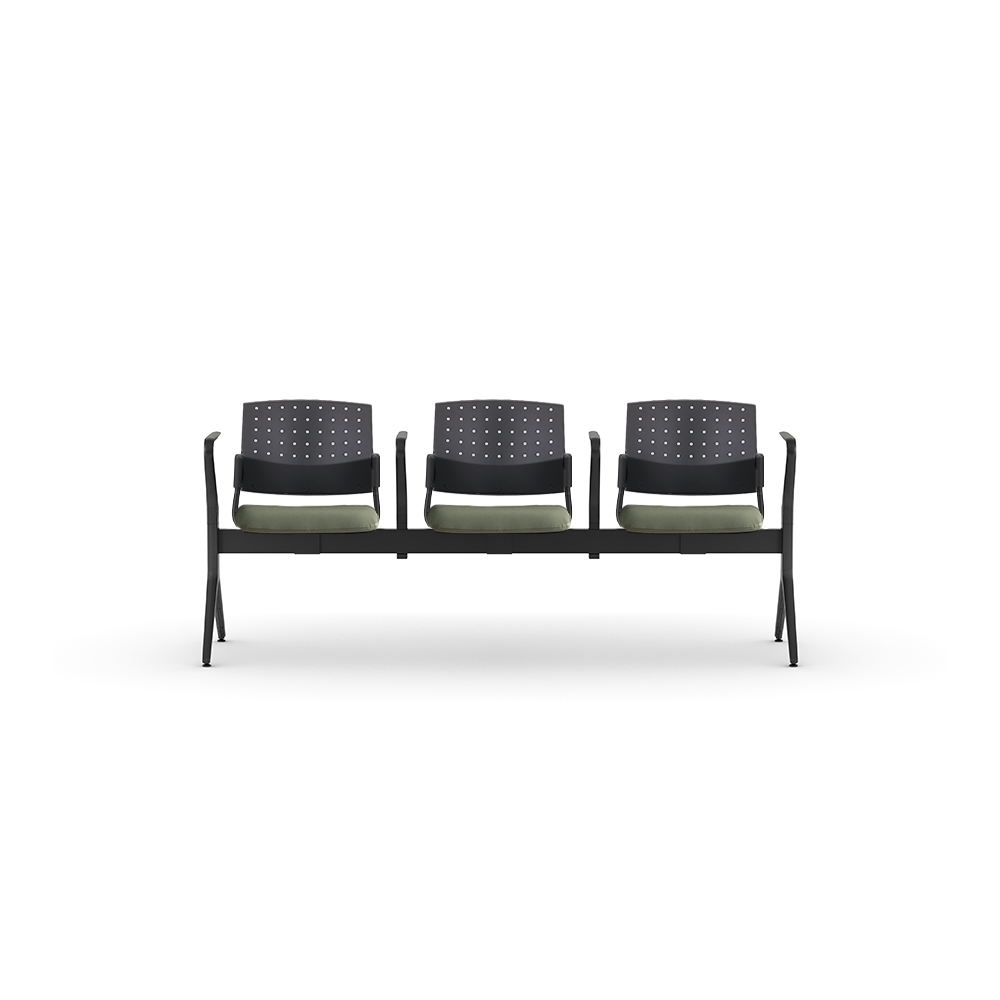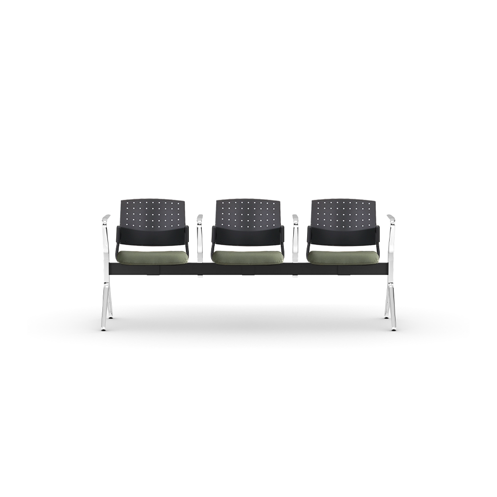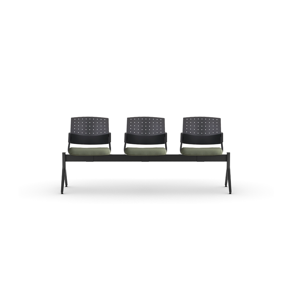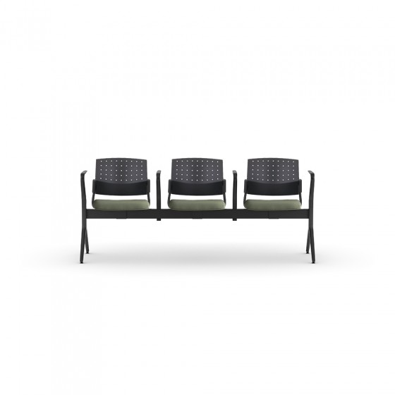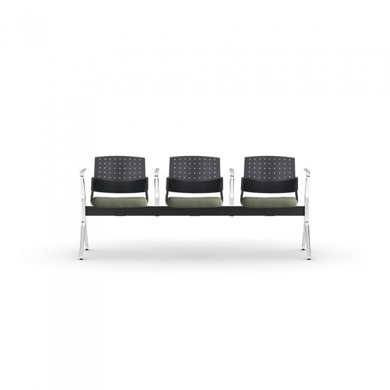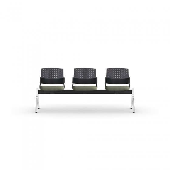 Plastic backrest and upholstered Dextra seat, 3-seat beam-mounted unit