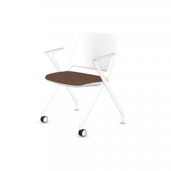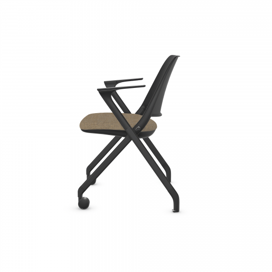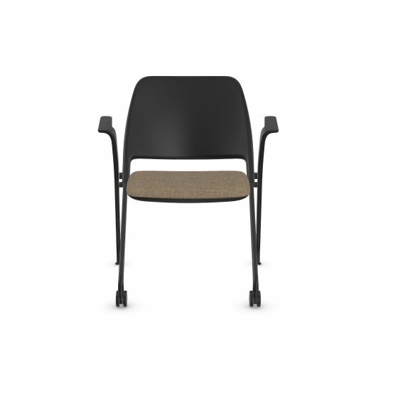 Low-back guest chair on casters and glides with armrests and upholstered seat