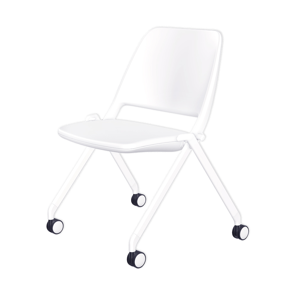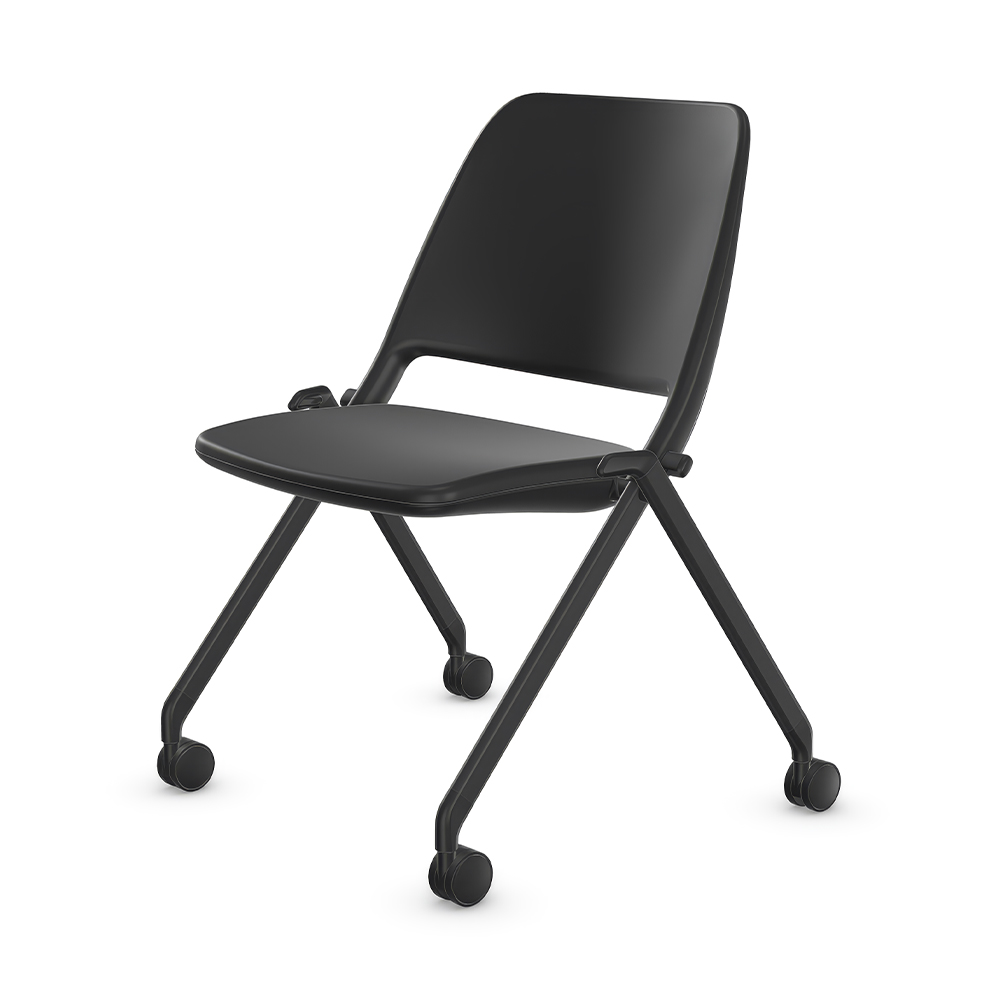 Low-back guest chair on casters.