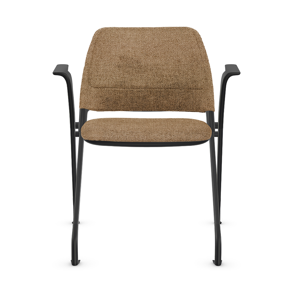 Low-back guest chair with armrests and upholstered seat and backrest.