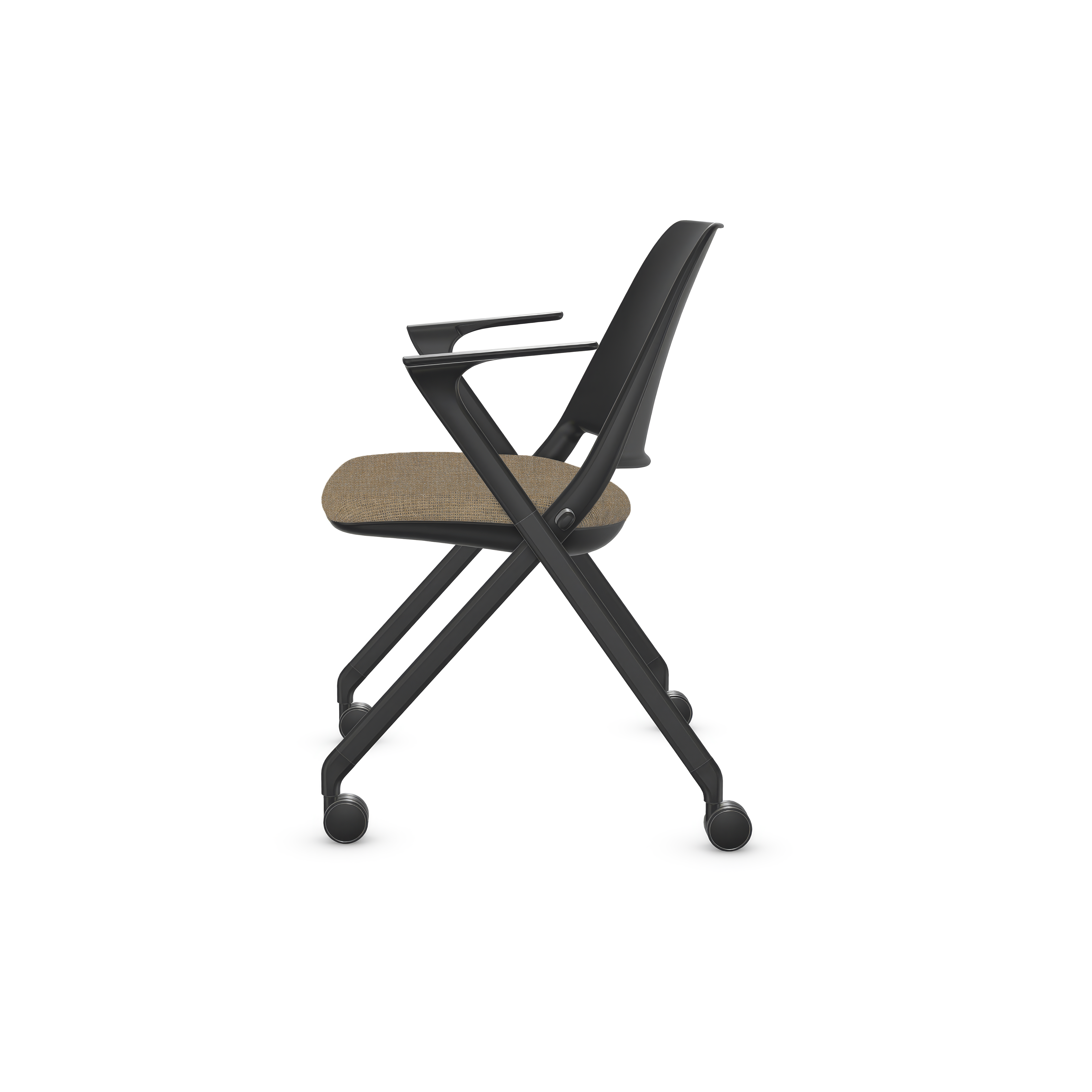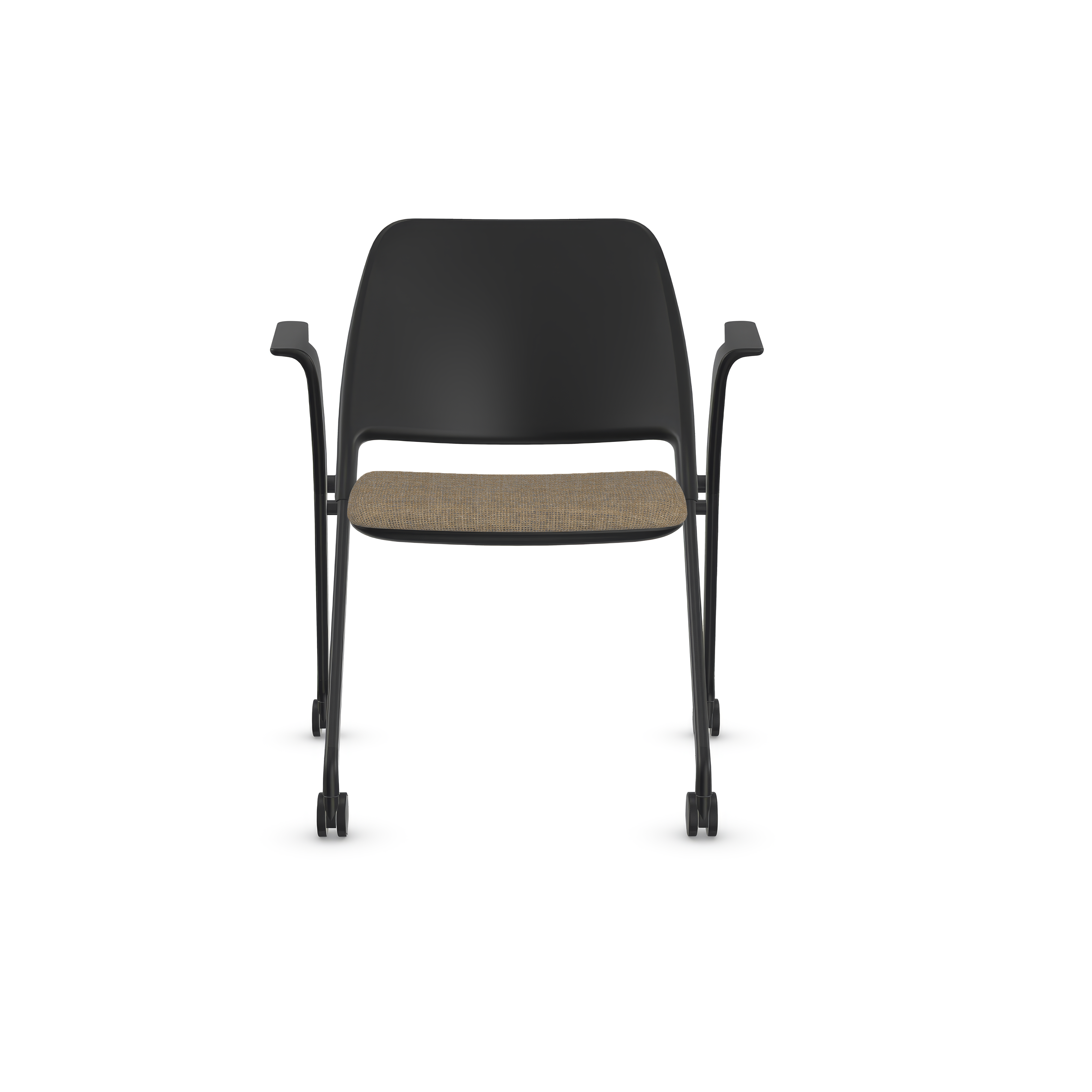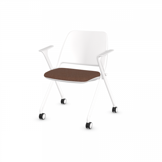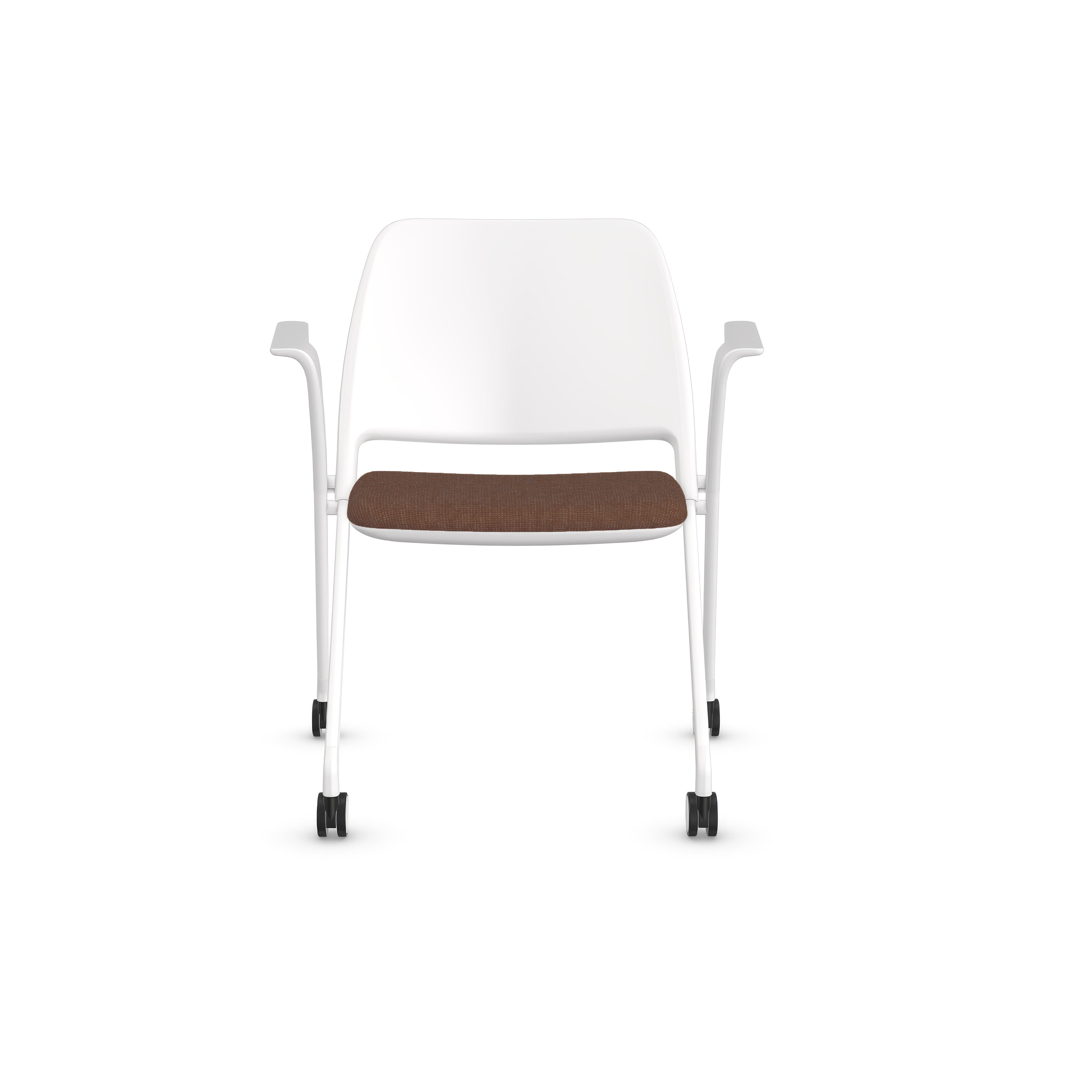 Chaise visiteur à dossier bas sur roulettes avec accoudoirs, siège rembourré