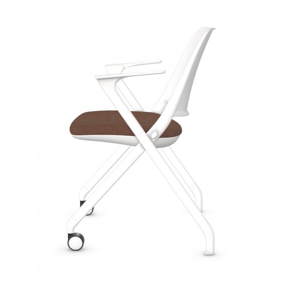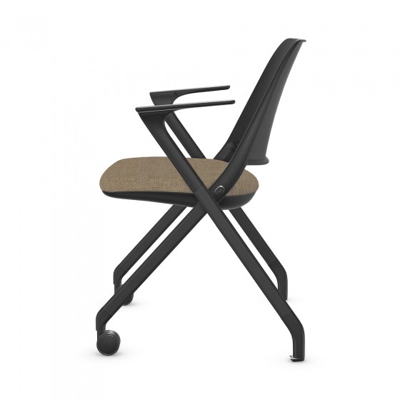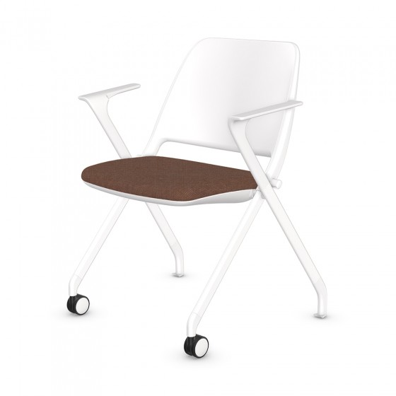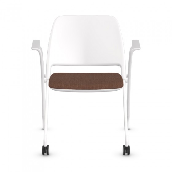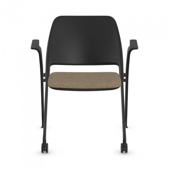 Chaise visiteur à dossier bas sur roulettes et patins avec accoudoirs, siège rembourré