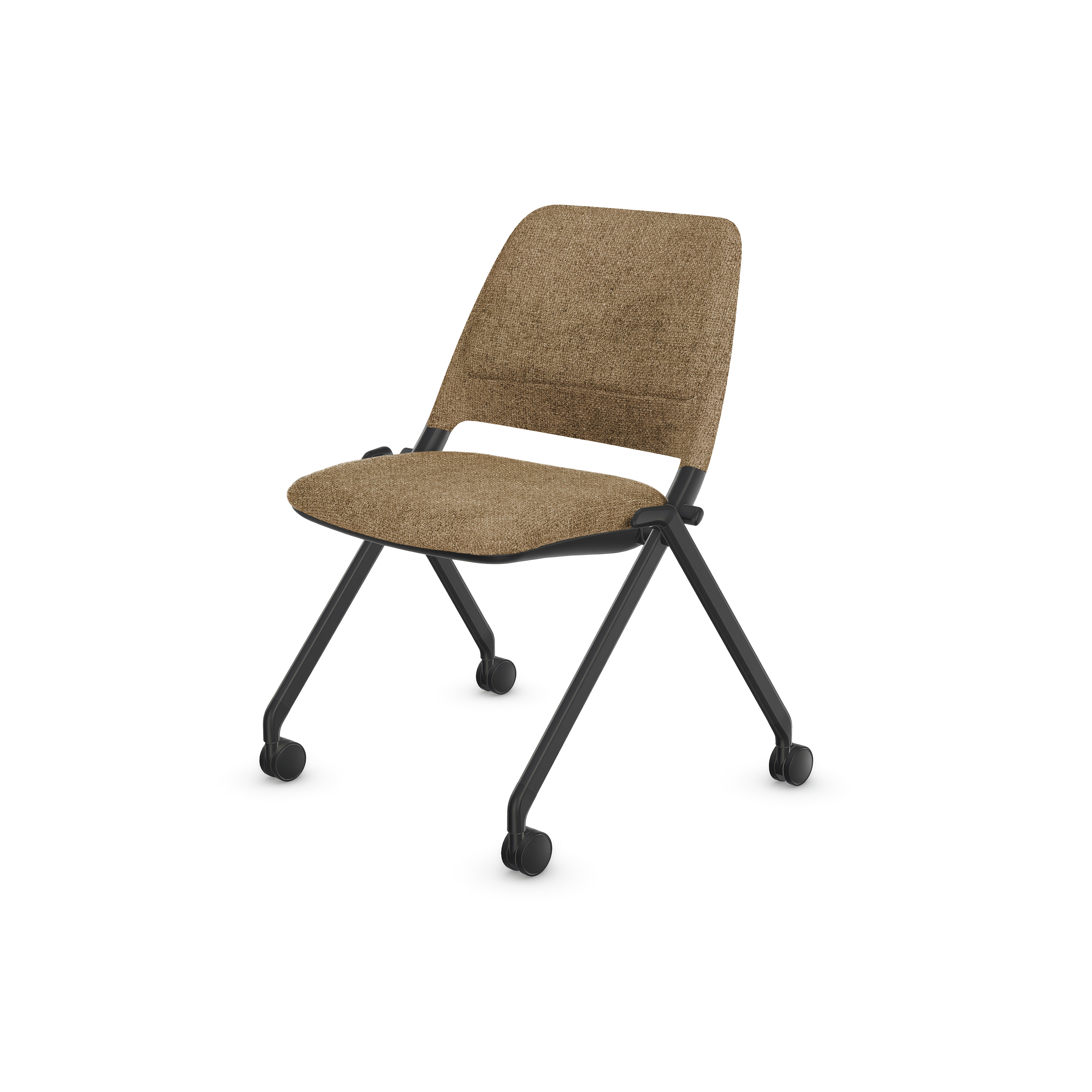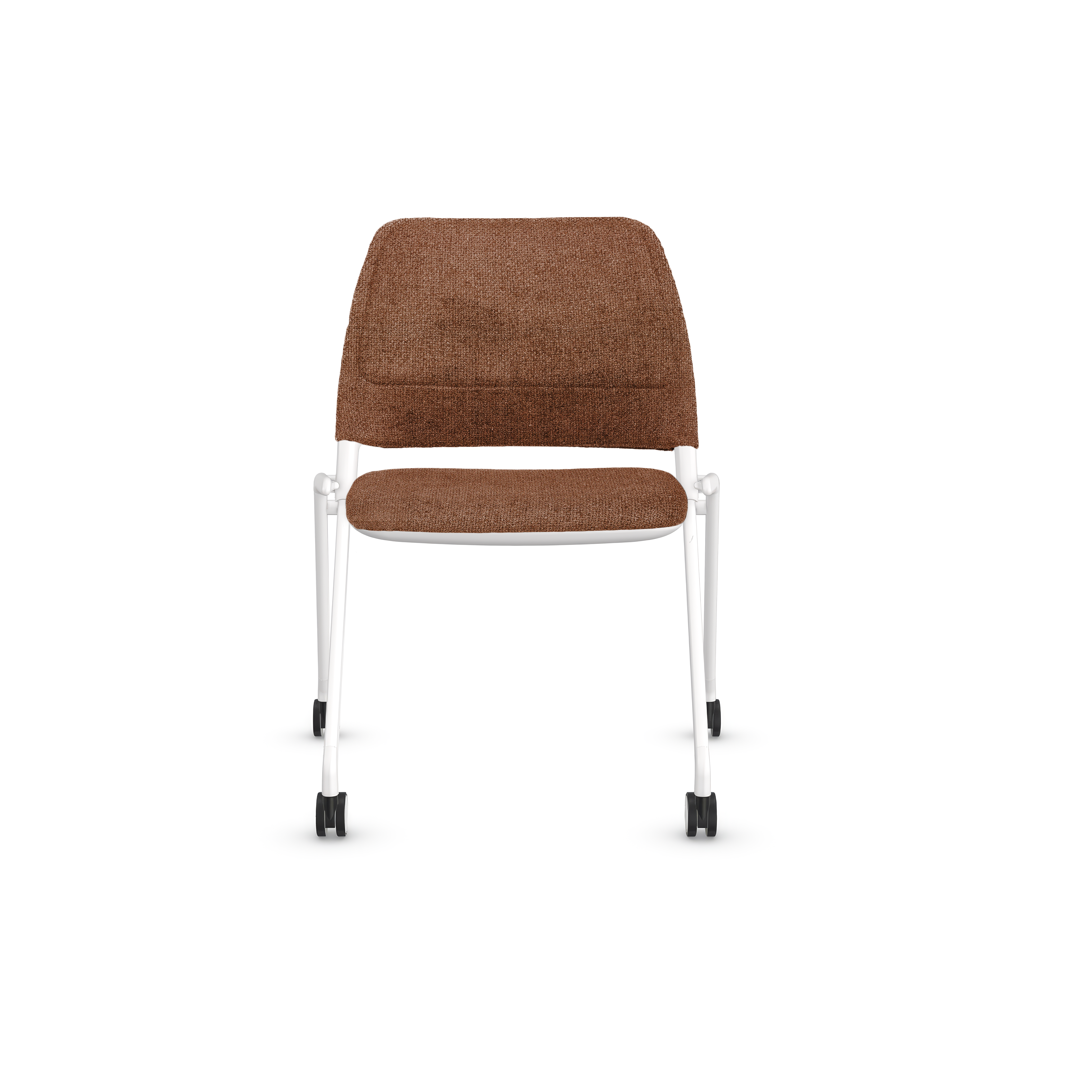 Chaise visiteur à dossier bas sur roulettes, dossier et siège rembourrés