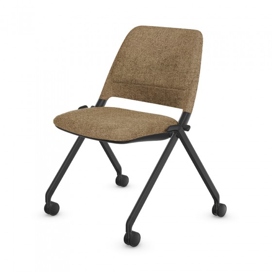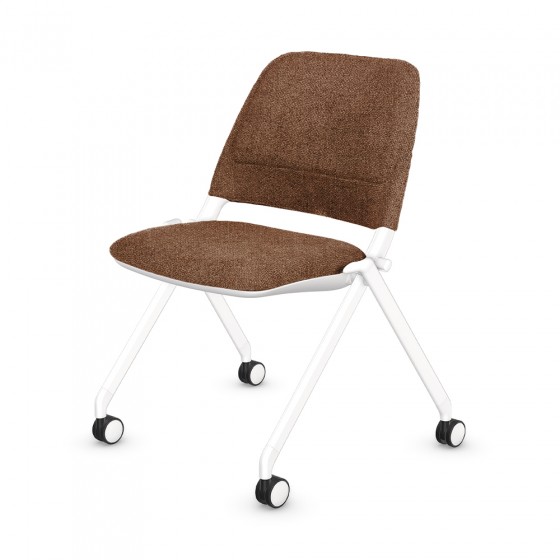 Chaise visiteur à dossier bas sur roulettes, dossier et siège rembourrés